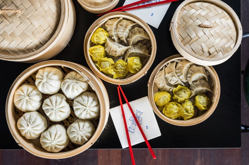 5. Watch our cooking instructions here. Fill a large pot with water and bring to the boil. Transfer dumplings into bamboo steamer (lid on) and sit atop of boiling water 8 mins. Set aside dumplings. Transfer buns into bamboo steamer (lid on) and steam for 15 mins. Using oven mits, remove bamboo steamer from the heat. Transfer dumplings and buns to a plate with sauce. Get your chopsticks ready!