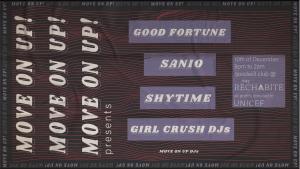 After a brief hiatus following a mental max capacity night in the basement, Move on Up takes charge again at the Rechabite for round 2.Just like last time, a sexy mash of house, disco, breaks and techno will be supplied via the ones and twos.