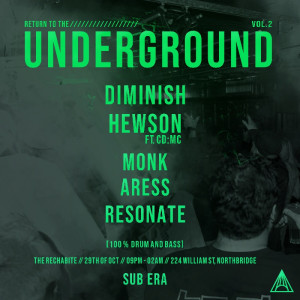 Bringing the best of the Perth bass scene to light as we showcase some amazing talent including DIMINISH, HEWSON Featuring CD:MC, MONK, ARESS & RESONATE.