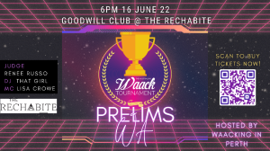 The winner of WA Prelim will be flown over to the finals in Sydney, in which guest judge Princess Lockeroo will be attending. The aim of this event is to reunite everybody post covid so let's meet new friends and celebrate with old ones to dance and enjoy Waacking.