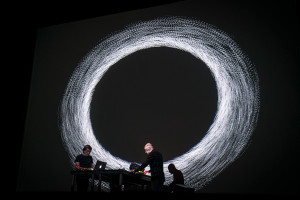Leaders in their fields, composer Franck Vigroux and installation artist Antoine Schmitt combine analogue instruments and visualised algorithms to seamlessly mesh the worlds of colossal sound and video.