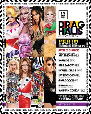 Australia’s BIGGEST DRAG Celebration/Party is coming to Perth with an ALMIGHTY lineup on 27th April at the fabulous Rechabite for one night only.