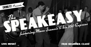 Hide the bottles under the sink; it's time for The Speakeasy! We're inviting you to throw on your glad rags and join us for a night of swingin' fun with 14-piece swing outfit Mace Francis & His 950 Express! Get your hotsy-totsy on with free beginner swing dance lessons from Shane McCarthy of Swing It! Swing Dance School.